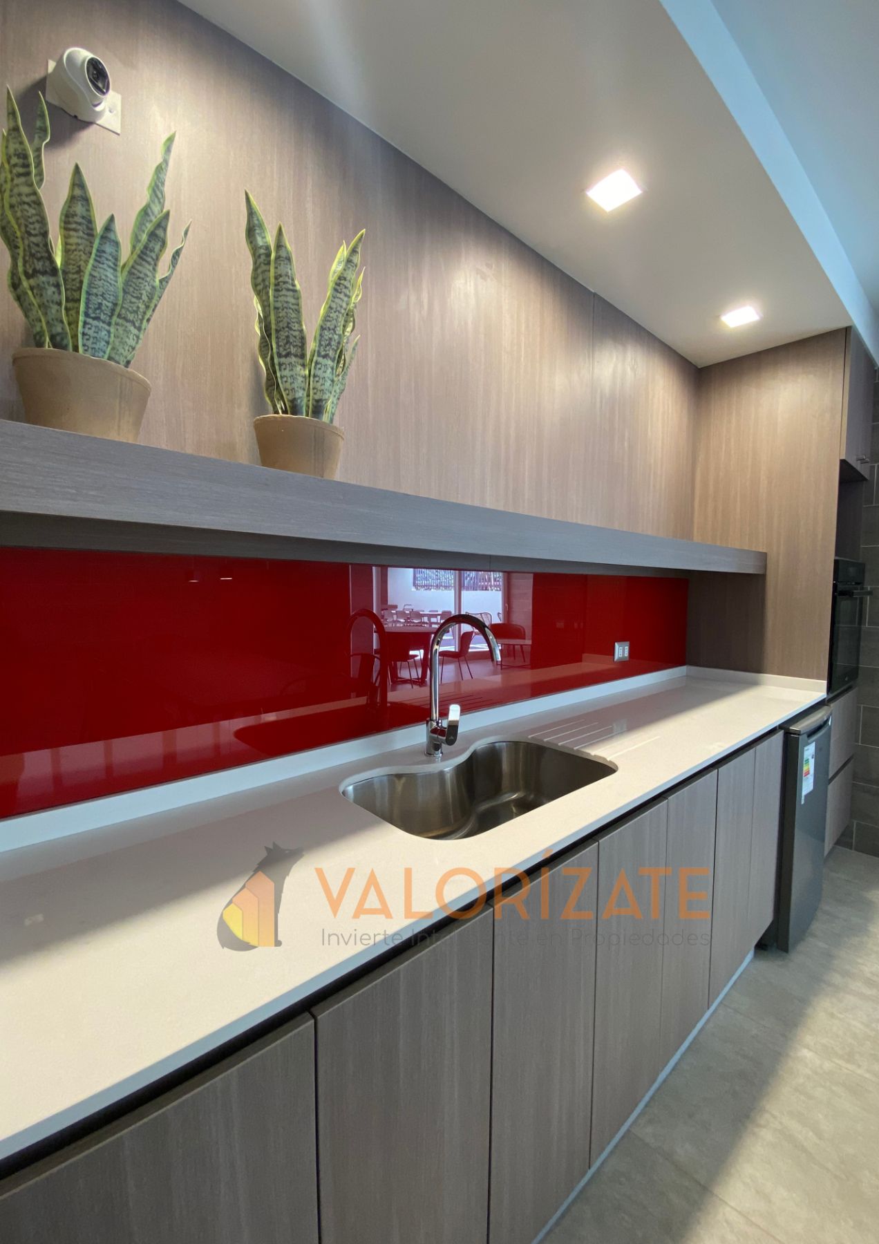 Cortinas tipo roller, ventanas de PVC, capaexterior de EIFS de aislación térmica, cocina de granito, vitrocerámica, piso flotante vinílico SPC, cerradura electrónica, sistemas de acceso controlado.